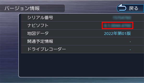 4.ナビソフトのバージョンを確認する。