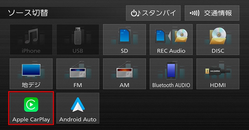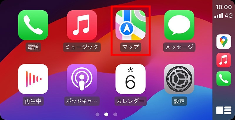 iPhone と初回接続時は自動で、ワイド スタンダード ナビの画面がApple CarPlay 画面に遷移します。