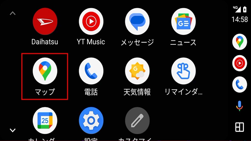 ワイド スタンダード ナビの画面上の「Android Auto 」アイコンをタップするとAndroid Auto の画面に切り替わります。