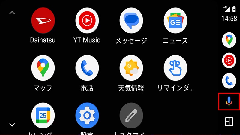 Google アシスタント との会話で、Android Auto のアプリケーションが操作可能です。会話の始動は以下、3か所で開始可能です。