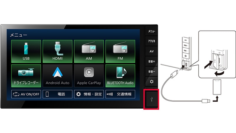 iPhoneと接続され、Apple CarPlayが使用可能となります。