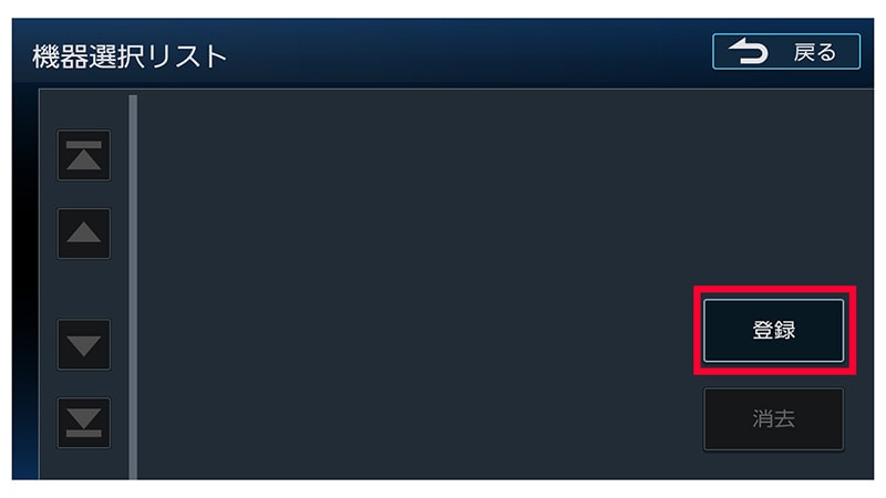 ➀ 【メニュー】ボタンを押下し、「情報・設定」をタップし、「機器選択リスト」をタップする