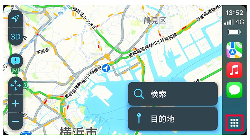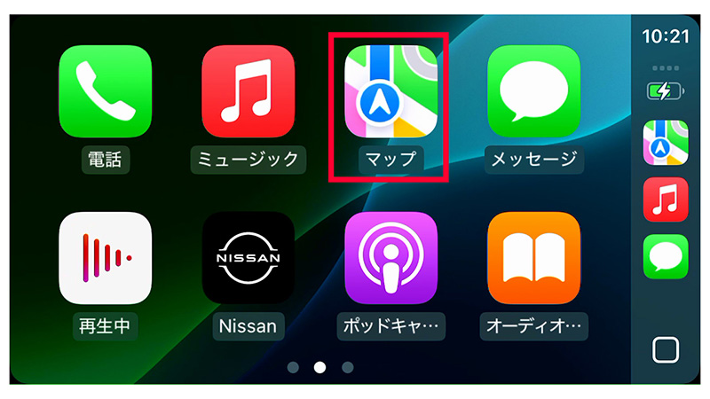 iPhoneと初回接続時は自動で、ディスプレイオーディオの画面がApple CarPlay画面に遷移します。