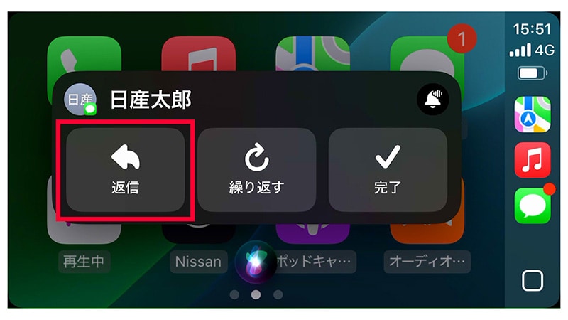音声でメッセージの返信が可能なので、運転中でも音声でメッセージの返信が行えます。