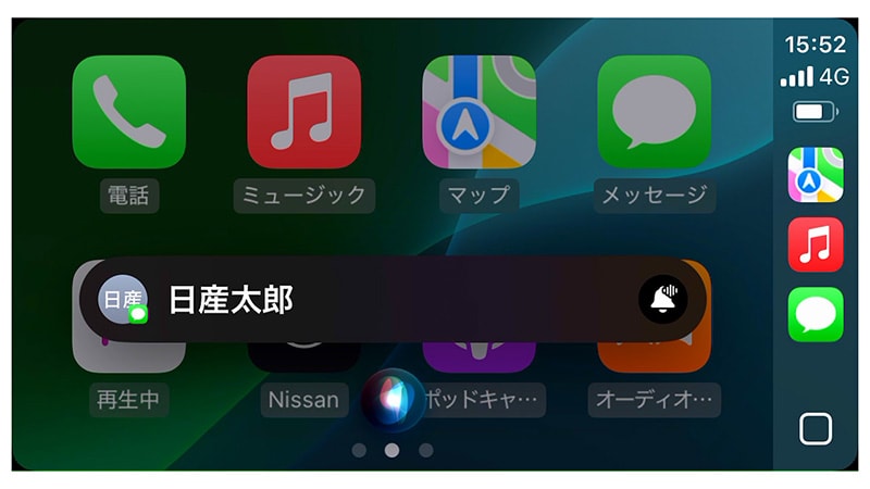Siriとの会話で、Apple CarPlayのアプリケーションが操作可能です。会話の始動は以下、3か所で開始可能です。
