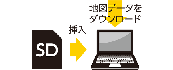 「1」で作成したSDカードをパソコンに挿入し「専用アプリケーション」から地図データをダウンロードします。