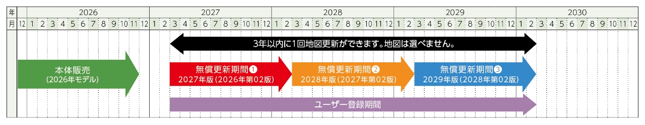 2027年版(2026年第02版)の地図更新は2027年3月から可能です。