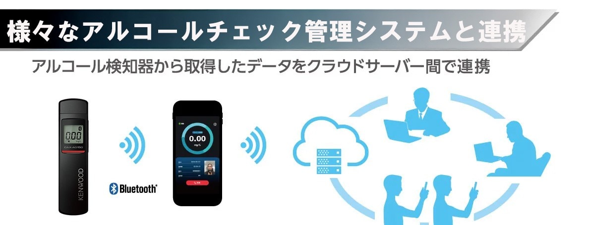 通信型アルコール検知器「CAX-AD150」は測定データをBluetooth®で出力する機能を活用し、様々なシステムとの連携を行っています。