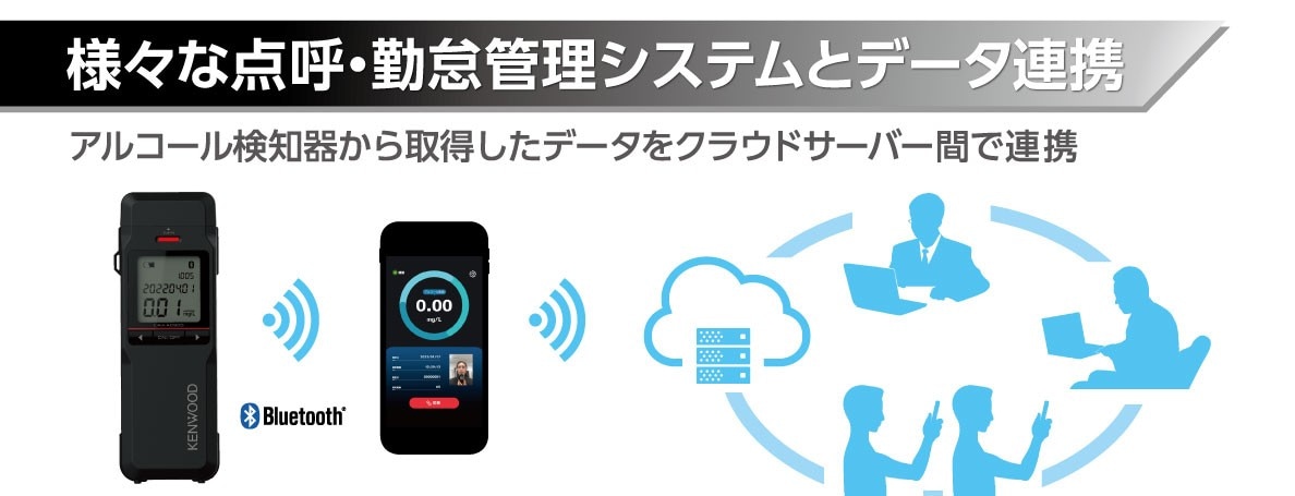 記録・通信型アルコール検知器「CAX-AD300」は測定データをBluetooth®で出力する機能を活用し、様々なシステムとの連携を行っています。