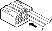 車両側コネクタ図は、左図の矢印方向(配線側)からみた図を記載しています。