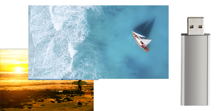 USBデバイス内に収録したMP3/WMA/AAC/WAV/FLACの音楽データ再生に対応。また、MPEG1/MPEG2/MPEG4/H.264/MKV/WMVの映像データにも対応しています。
