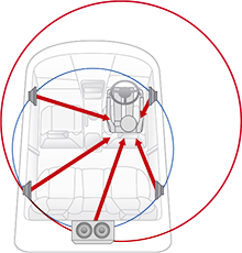 クルマの中に発生する音の残響成分を取り出し、デジタル処理技術で最適に加工した音の成分を加えることで、左右の音の広がり感を補正。すべての座席で自然な音響空間を実現することができます。