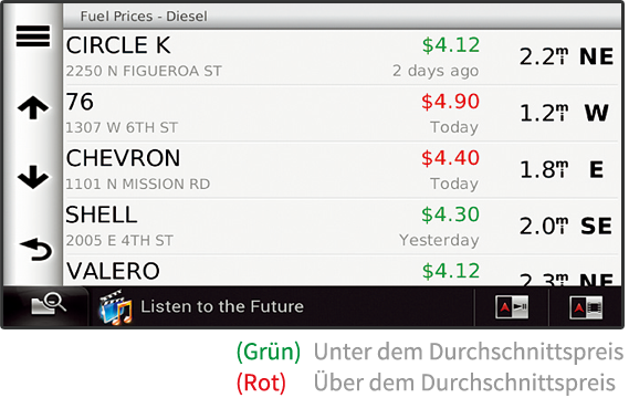 Finden Sie die günstigsten Benzinpreise in der Umgebung und navigieren Sie direkt zur entsprechenden Tankstelle.