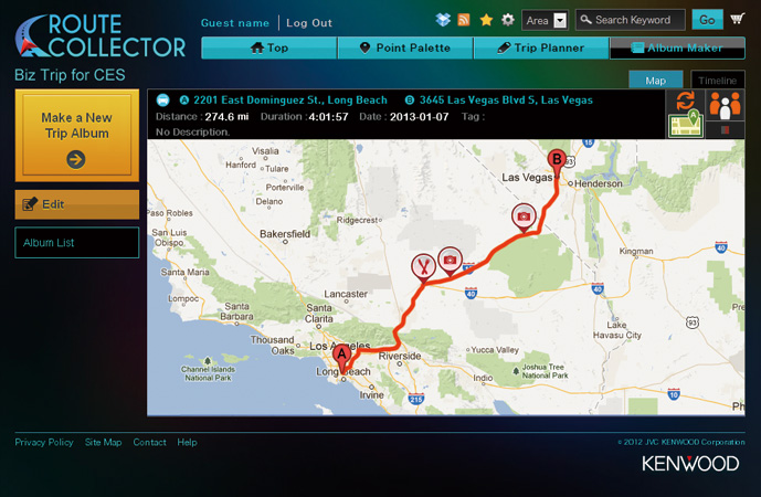 Laden Sie ihre Informationen wie GPS-Logs ihrer gefahrenen Route auf den KENWOOD-Server. Über die Route-Collector können Sie diese Daten später komfortabel einsehen.