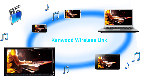 You can share video and music content between DNN receiver and other Wi-Fi enabled devices such as Smartphone, Tablet, or PC. Enjoy seamless entertainment while you are driving.
