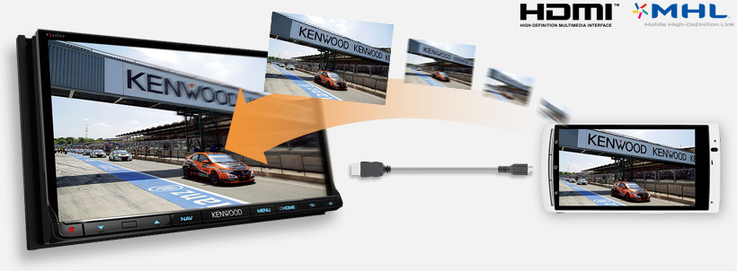 Use an optional cable(s) to connect HDMI or MHL devices to the receiver, and play movie files from an iPhone 5, a Galaxy, or an Android smartphone.
