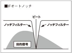 強力な妨害信号をノッチで除去し、目的の微弱信号をキャッチ。ノッチ周波数が自 動で可変するIFオートノッチ※1と手動で可変できるマニュアルノッチ※2を、混信の状況に合わせて使い分けできます。