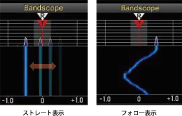 ※ストレート表示時は、ウォーターフォールの輝線は一時停止して平行移動します。エクスパンド時は、画像が若干粗くなります。