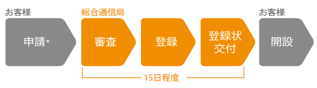 ※2台以上を登録する場合「包括登録申請」が可能です。この場合、運用開始から15日以内に開設届の提出が義務付けられています。