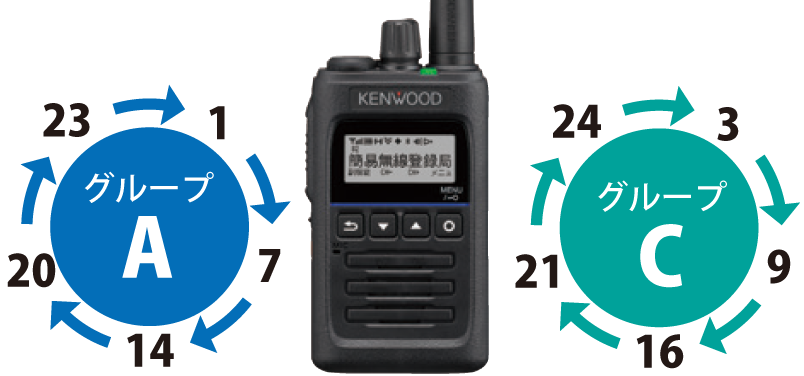 82チャンネルをAからQの17組のグループに振り分け、さらにサーチを高速化。固定チャンネル感覚で運用できます。