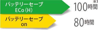 市販のアルカリ乾電池3本で最長100時間※3の連続運用が可能です。