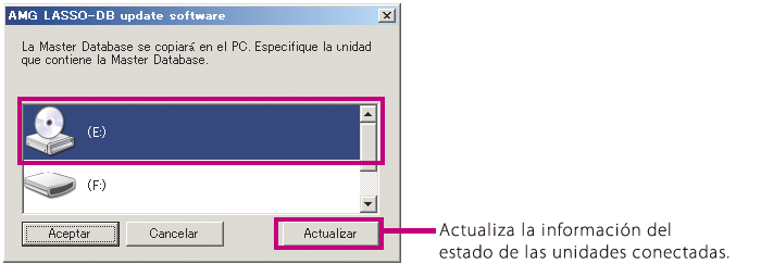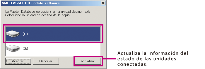 Cuando la base de datos ha sido actualizada, la ventana para copiar la base de datos maestra aparece.