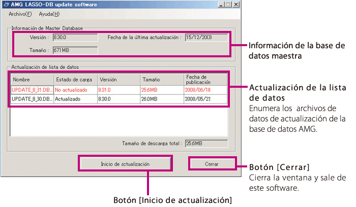 actualización de la base de datos AMG del servidor KENWOOD. |