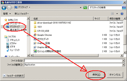 ※ ダウンロードしたファイルがデスクトップ無い場合は、再度デスクトップを指定してダウンロードしてください。