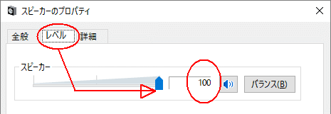 - 5-6.「レベル」タブをクリックし、100%にします。