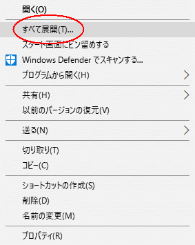- 4-2. ダウンロードしたファイルを右クリックし「すべて展開」をクリックします。
