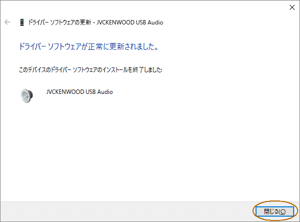 ・「JVCKENWOOD USB Audio」が無い場合は、上記項目3.ドライバーソフトのダウンロードを行ってください。