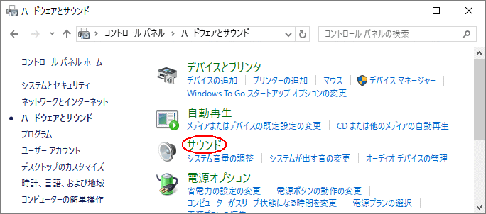 - 5-2. 【ハードウェアとサウンド】をクリックし【サウンド】クリックします。