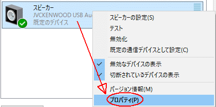 - 5-5.「JVCKENWOOD USB Audio」を右クリックしてプロパティを表示させます。