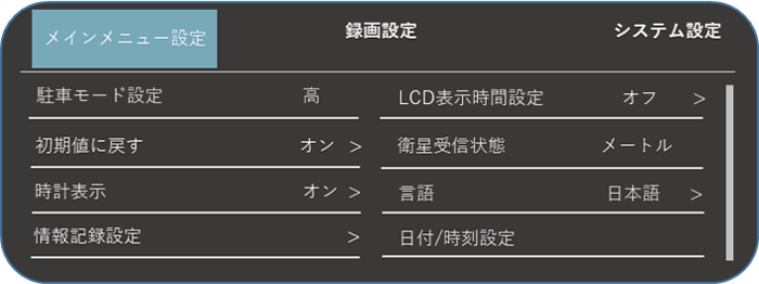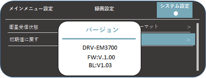 下記の手順に従って、お使いのドライブレコーダーのファームウェアバージョンが、アップデート対象バージョンかどうかを確認してください。