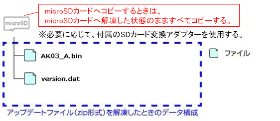 - 解凍後のアップデートファイルをmicroSDカードへコピーする。