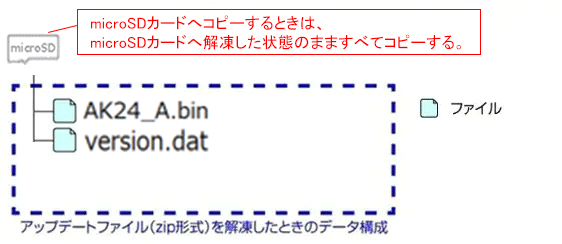 - 解凍後のアップデートファイルをmicroSDカードへコピーする。
