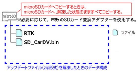 - SDカードには、ダウンロードしたアップデータ以外のフォルダ/ファイルを置かないようにしてください。