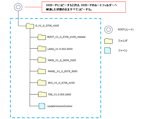 - SDカードには、ダウンロードしたアップデータ以外のフォルダ/ファイルを置かないようにしてください。