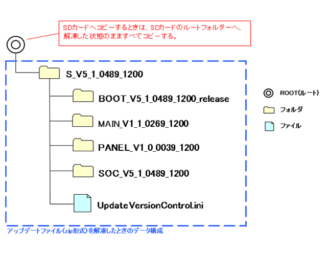 - SDカードには、ダウンロードしたアップデータ以外のフォルダ/ファイルを置かないようにしてください。
