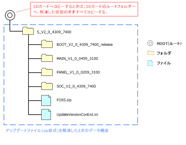 - 解凍後のアップデートファイルをSDカードへコピーする。