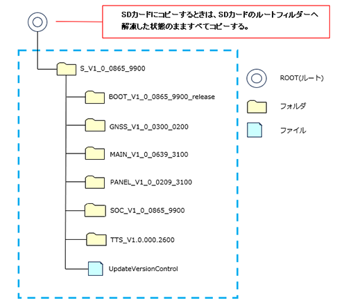 - SDカードには、ダウンロードしたアップデータ以外のフォルダ/ファイルを置かないようにしてください。