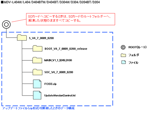 - SDカードには、ダウンロードしたアップデータ以外のフォルダ/ファイルを置かないようにしてください。