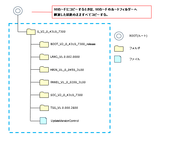 - 解凍後のアップデートファイルをSDカードへコピーする。