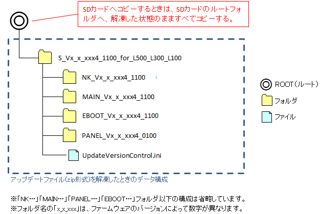 (3.の図を参照してください。) - 以上でアップデート用SDカードの作成は終了です。