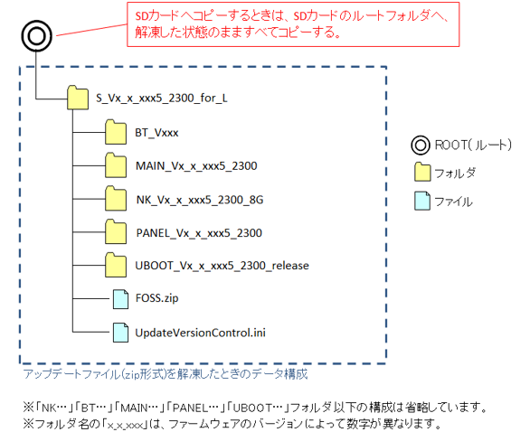 - SDカードには、ダウンロードしたアップデータ以外のフォルダ/ファイルを置かないようにしてください。