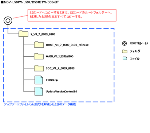 - SDカードには、ダウンロードしたアップデータ以外のフォルダ/ファイルを置かないようにしてください。