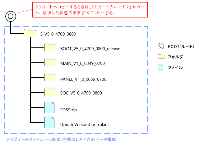 - 解凍後のアップデートファイルをSDカードへコピーする。