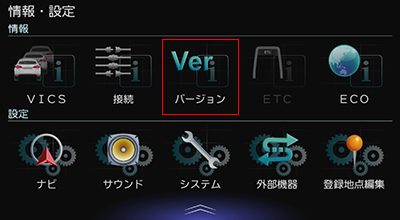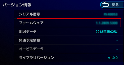 下記の手順に従って、お使いのカーナビゲーションのファームウェアバージョンが、アップデート対象バージョンかどうかを確認してください。