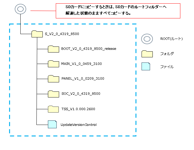 - SDカードには、ダウンロードしたアップデータ以外のフォルダ/ファイルを置かないようにしてください。