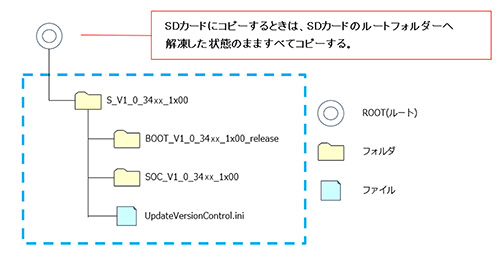 - 解凍後のアップデートファイルをSDカードへコピーする。